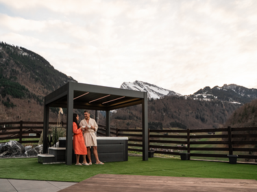 Genieße mit unserer Pergola deinen Außenbereich das ganze Jahr über – bei Regen, Schnee oder Sonne.