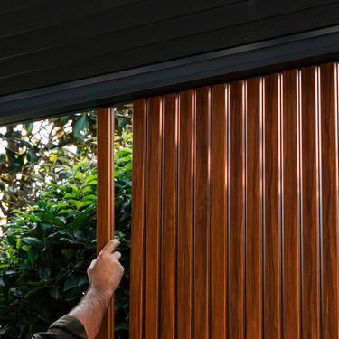 La paroi à lames orientables en aluminium PERGOLUX transforme votre pergola, d'un espace extérieur ouvert, en un refuge abrité dont vous pouvez profiter toute l'année. Inspiré du palissandre et conçu pour résister aux conditions climatiques les plus extrêmes, ce système robuste en aluminium vous offre la liberté de créer des espaces confortables pour vivre, manger ou vous détendre, quel que soit le temps.